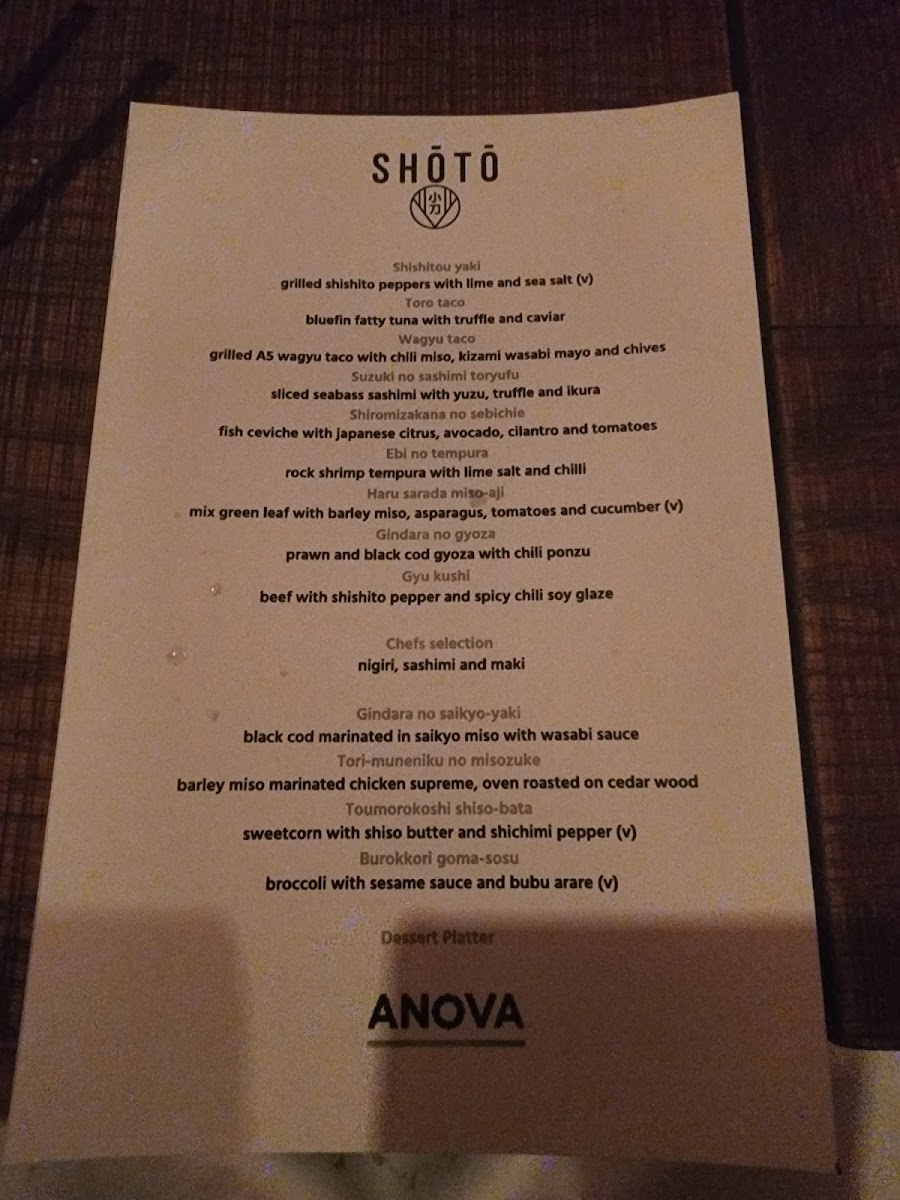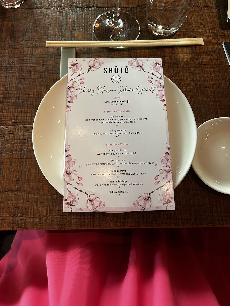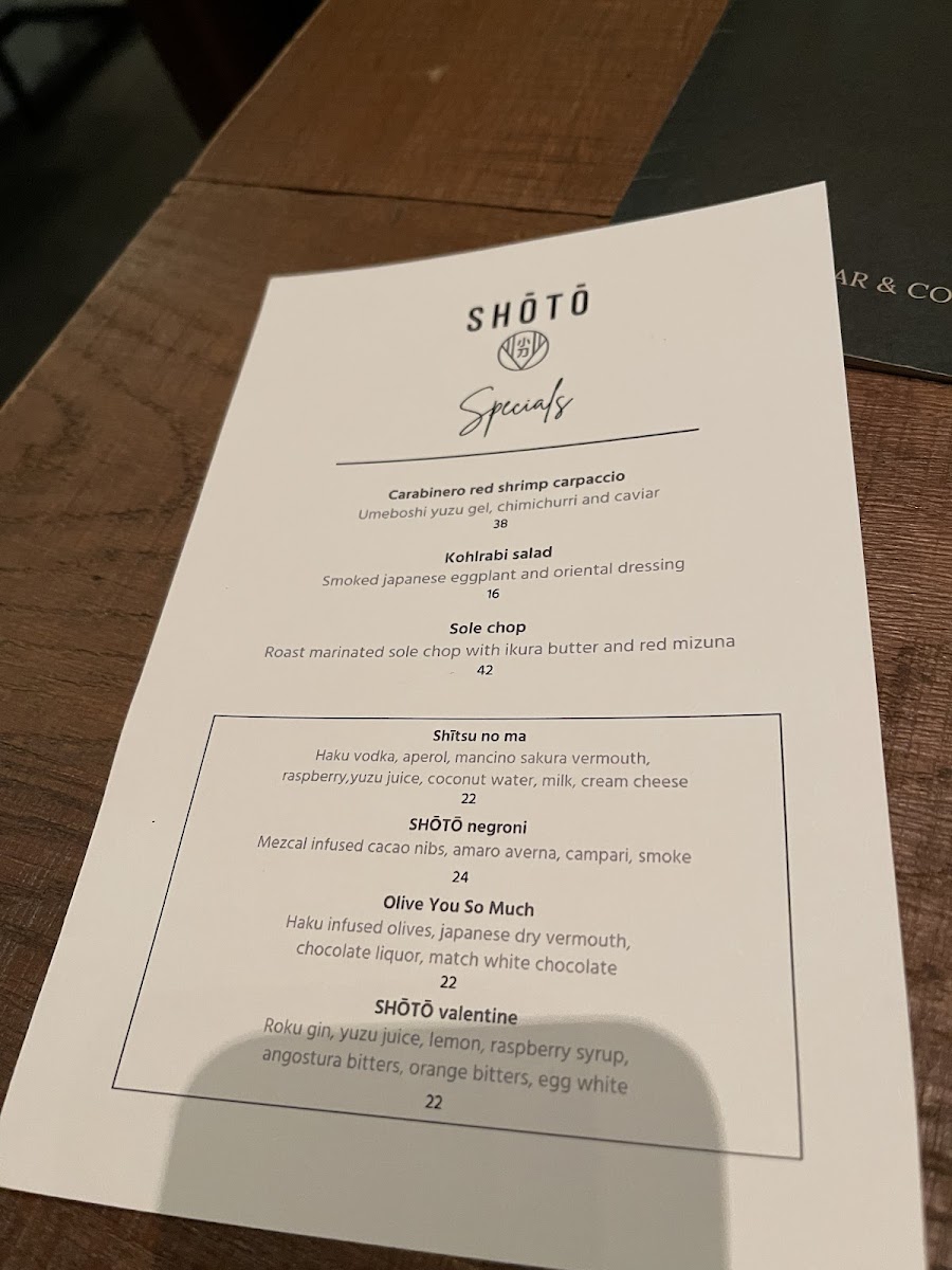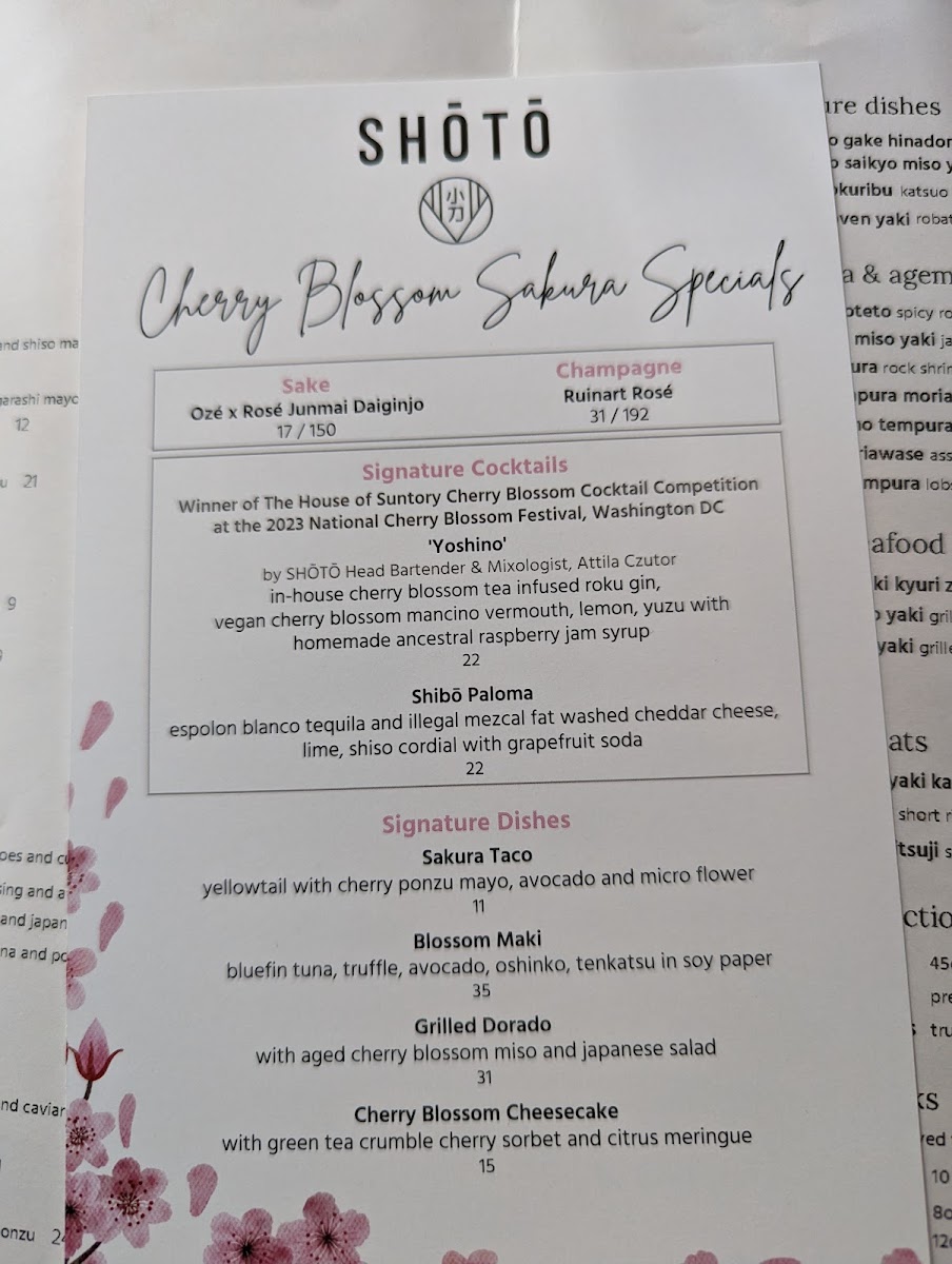 SHŌTŌ Washington DC Menu