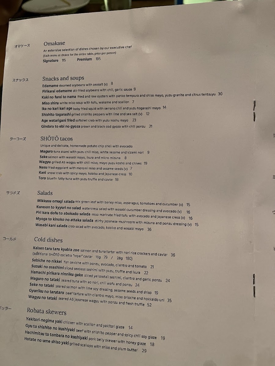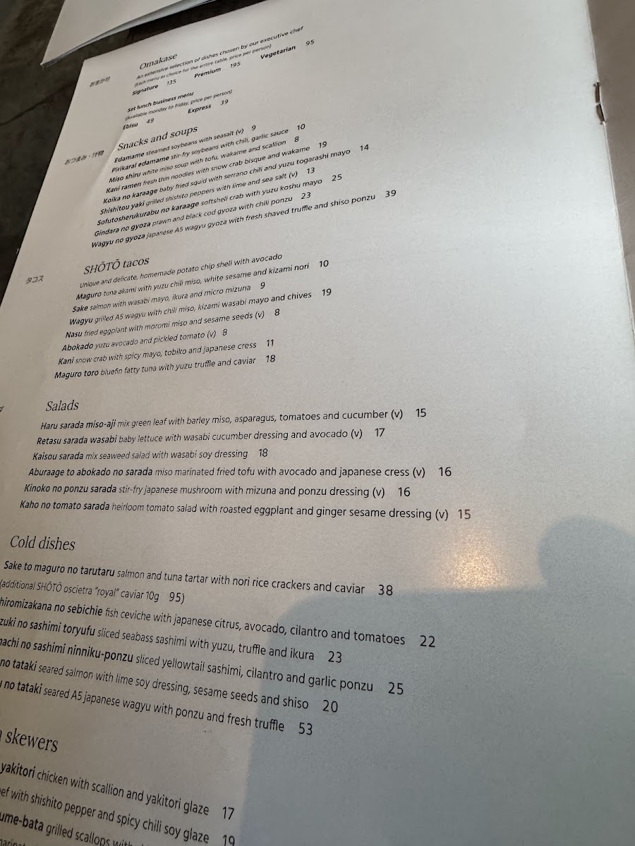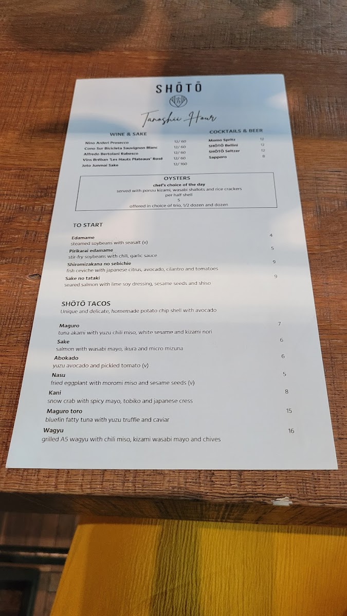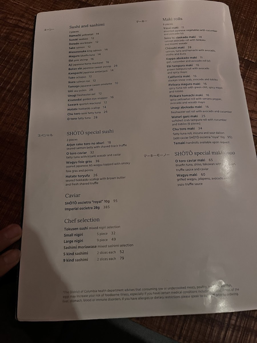 SHŌTŌ Washington DC Menu